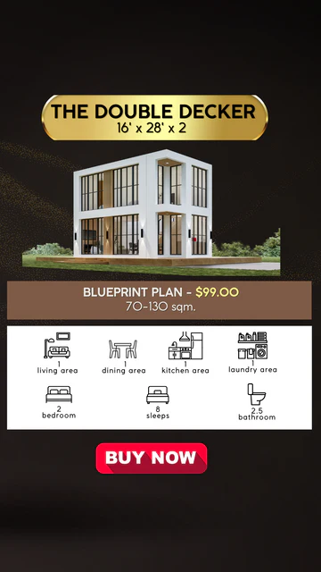The Double Decker 20'x2 is a sophisticated two-storymodern estate that seamlessly blends luxury with minimalism. Its striking cubic architecture is defined by a pristine white façade, accented with warm wooden paneling and expansive floor-to-ceiling glass windows framed in black. The symmetrical design ensures maximum natural light penetration while maintaining a sleek, openconcept ambiance. Elevated on a wooden platform, the entrance is elegantly recessed, creating a stylish and inviting focal point. Exterior lighting enhances the structure’s contemporary charm, making it a standout in both daylight and nighttime settings. Perfect for those who appreciate modern aesthetics with a touch of warmth and elegance